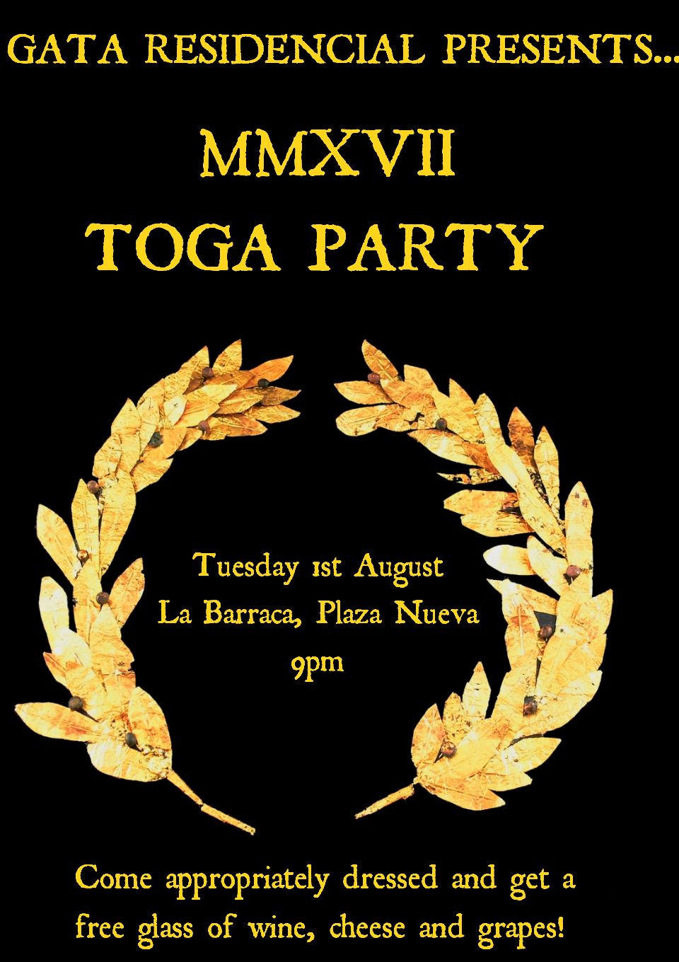 The fiestas this year run from Friday 28th July until Sunday 6th August and the barracas will be open from Saturday 29th. Each group arranges their own decorations, food and drink and the Fiestas commission provides live music, parties and entertainment every night. This year, Gata Residencial is going to contribute to the entertainment by hosting our very first TOGA PARTY, probably Monday 31st July (TBC).